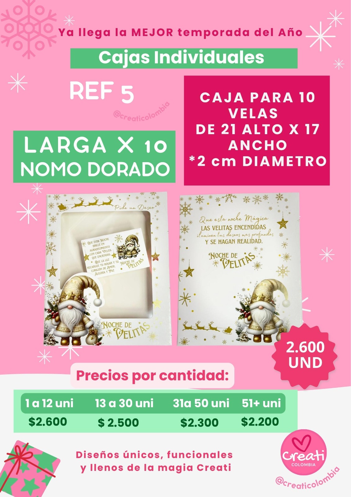Caja para 10 velas de 21 de alto x 17 de ancho x 2 cm diámetro